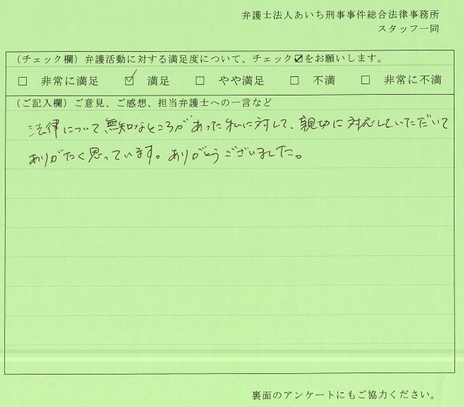 男性は実刑判決になると困ることが多くあり、実刑判決を免れるために弊所にご依頼され、執行猶予を獲得しました。